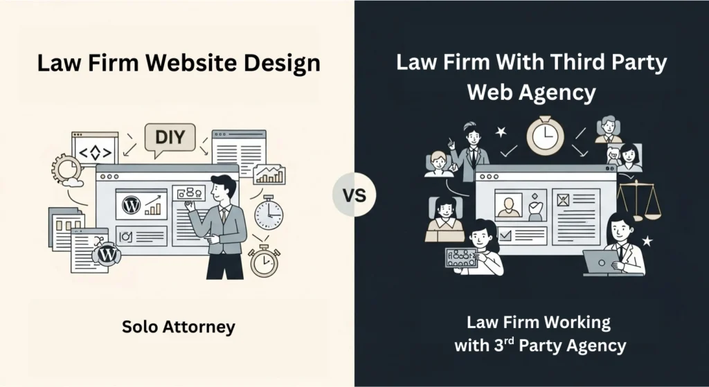 Hiring a third-party agency or specialized service for website development for law firms is usually more expensive altogether. Still, it allows your firm’s staff and attorneys to devote their entire time to casework rather than technical concerns.